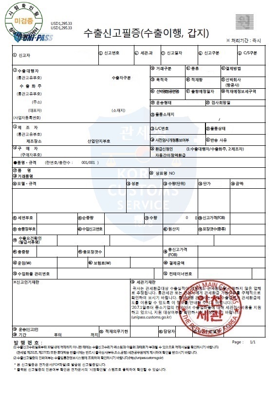 수출신고필증과 수입신고필증은 조금 다르게 생겼는데,