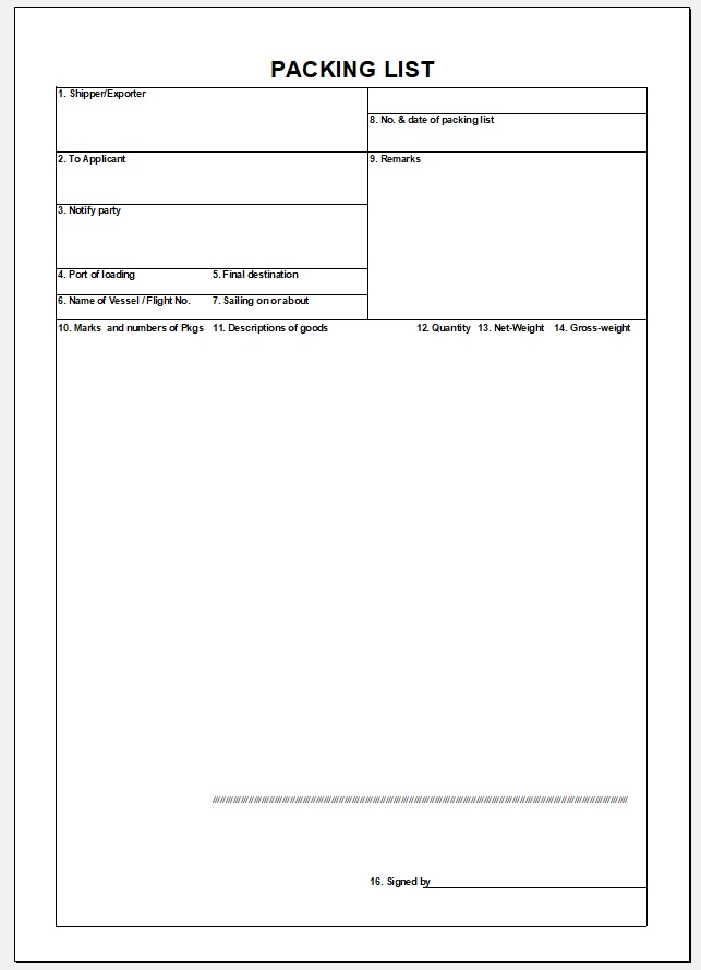 8) No. & date of packing list: 인보이스 번호와 날짜를 기입합니다.